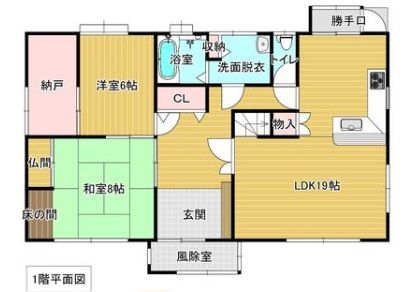 | 設備 | 温水洗浄便座、トイレ2ヶ所、追焚機能、システムキッチン、カウンターキッチン、IHクッキングヒーター、洗髪洗面化粧台、照明器具、電気、上水道、下水道、庭、外部物置つき | ||